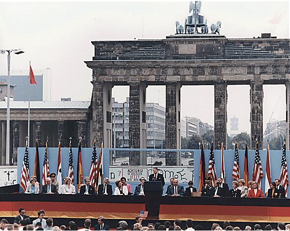 两德统一后首任总统赫尔穆特科尔表示,他永远不会忘记里根站在他身旁,呼吁戈尔巴乔夫推倒柏林墙。