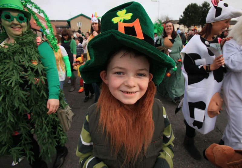爱尔兰人盛装打扮度过圣帕特里克节。