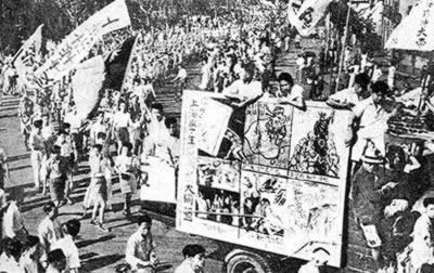 23日五万多上海群众响应大学生号召,举行反战大游行